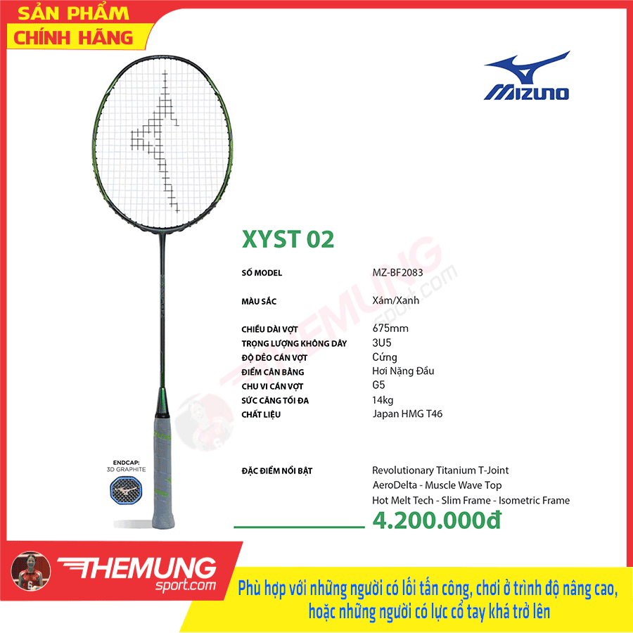 - Thứ nhất là cây vợt Mizuno XYST 02: Nếu bạn đang tìm kiếm 1 cây vợt chuyên công trợ lực tốt thì đây là 1 siêu phẩm không thể bỏ qua.