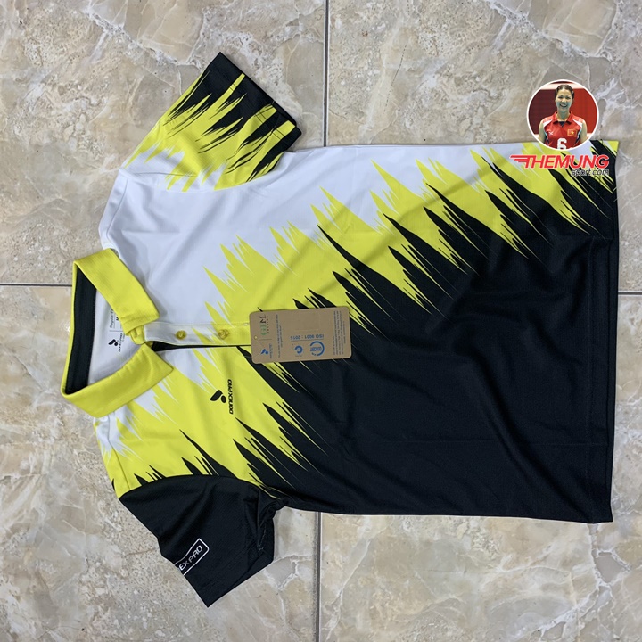 Áo thể thao cầu lông 9026 đen phối vàng thiết kế cổ bổ trụ với công nghệ in chuyển nhiệt toàn bộ siêu bền màu giúp cho màu áo đẹp và sắc nét.