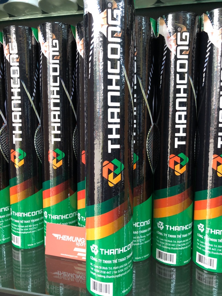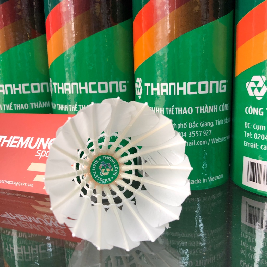 - Cầu lông Thành Công được sản xuất trên dây chuyền công nghệ hiện đại, theo tiêu chuẩn của Liên đoàn Cầu lông Thế giới BWF.