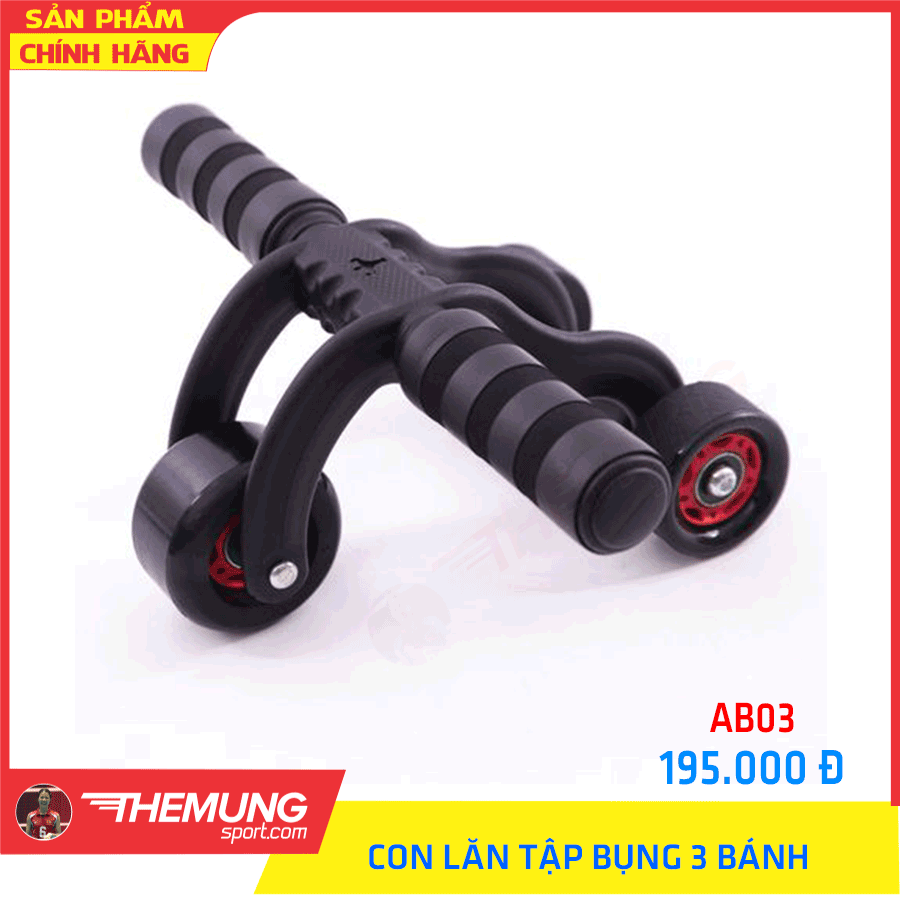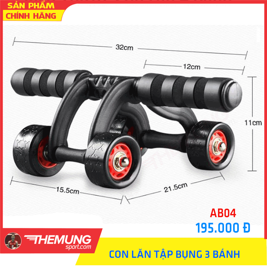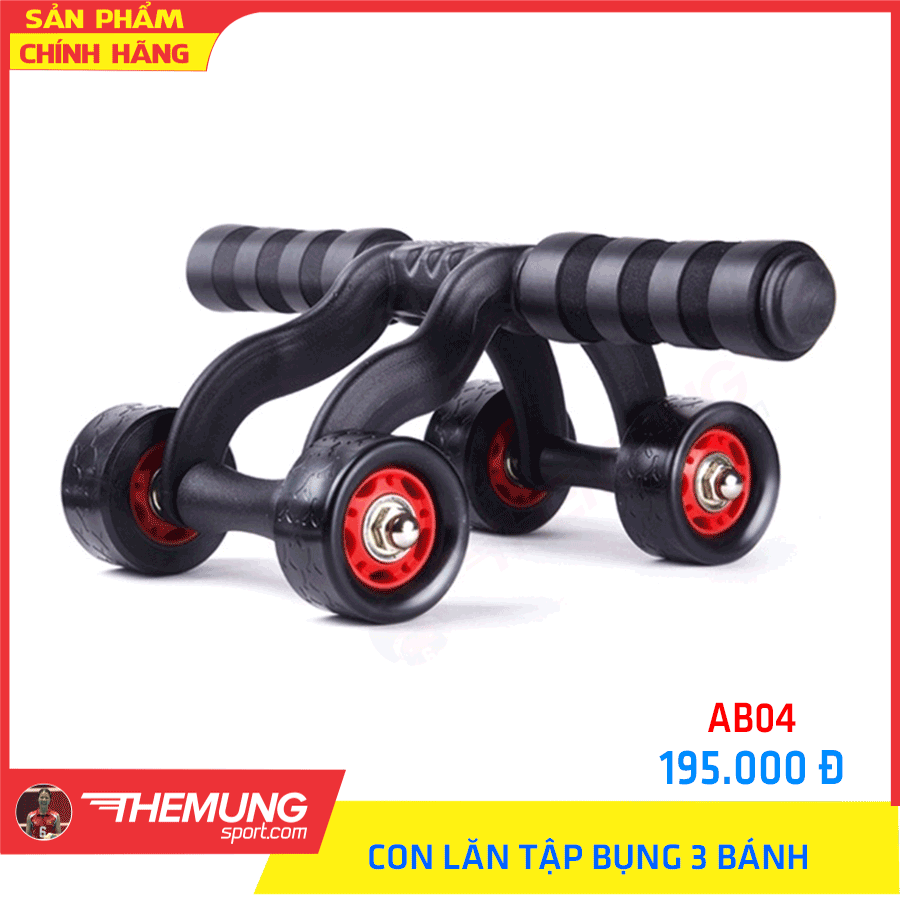 - Con lăn tập cơ bụng có thiết kế vượt trội với với 4 bánh xe sắp xếp theo hình tam giác nhằm khắc phục những hạn chế của các con lăn 2 bánh giúp đảm bảo chắc chắn và giữ thăng bằng tốt hơn khi sử dụng.