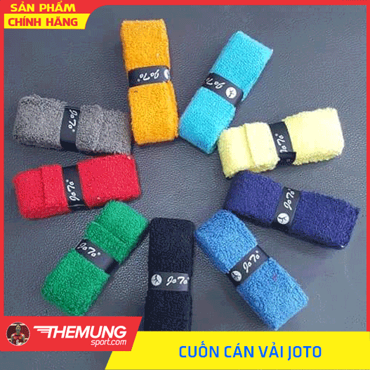 Joto là thương hiệu chuyên sản xuất các dòng phụ kiện thể thao, trong đó quen thuộc nhất là dòng quấn cán vợt. Joto có sản xuất loại cuốn cán vải và quấn cán trơn, quấn cán lỗ... Có các màu như: trắng, đen, đỏ, vàng, xanh.. Sử dụng: Dùng để cuốn cán vợt cầu lông Tác dụng: cầm êm tay, thấm hút mồ hôi tốt,