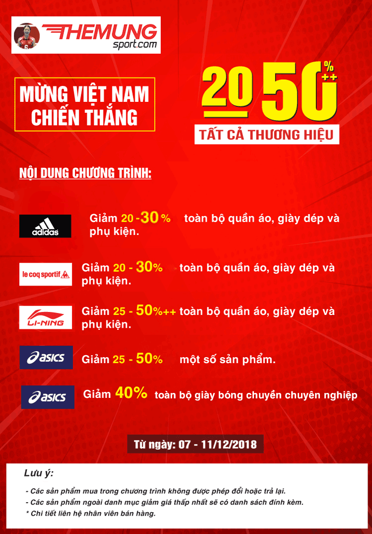 MỪNG VIỆT NAM CHIẾN THẮNG - THẾ MỪNG SPORT SALE SHOCK 20-50%++ TẤT CẢ THƯƠNG HIỆU