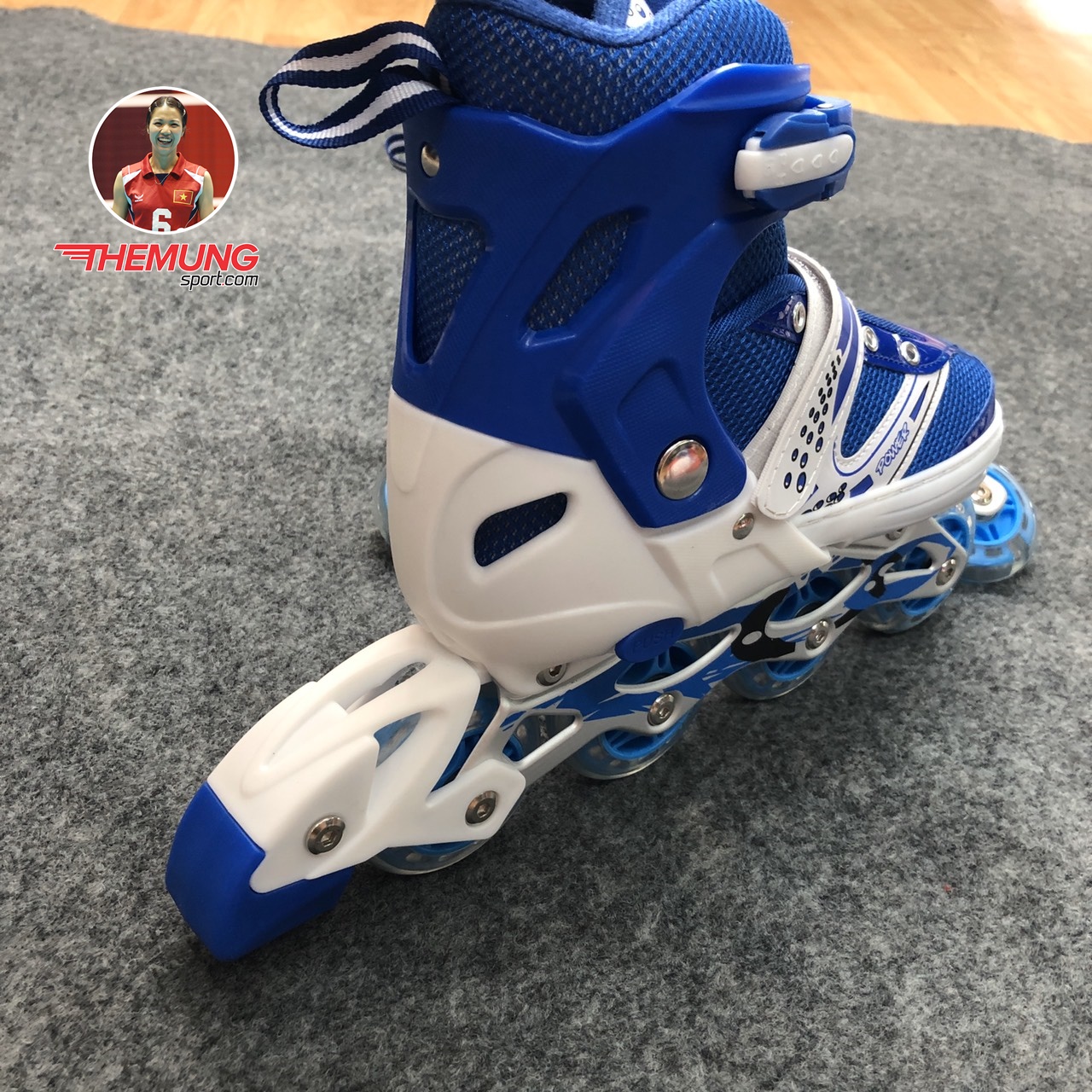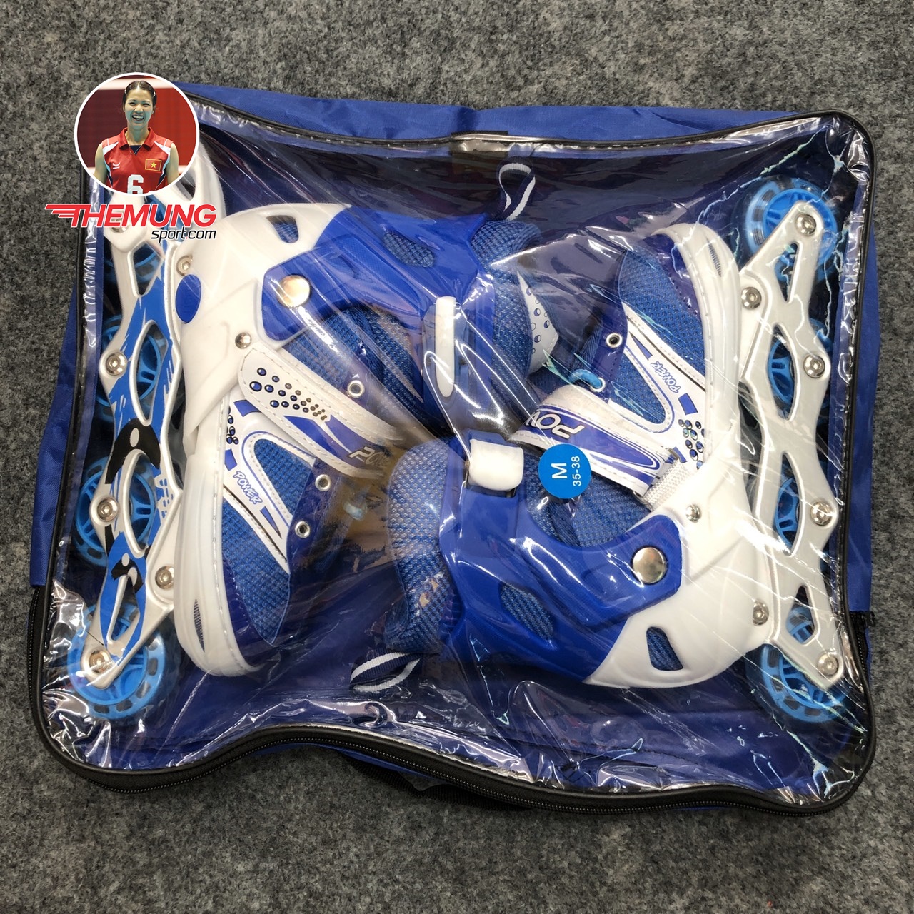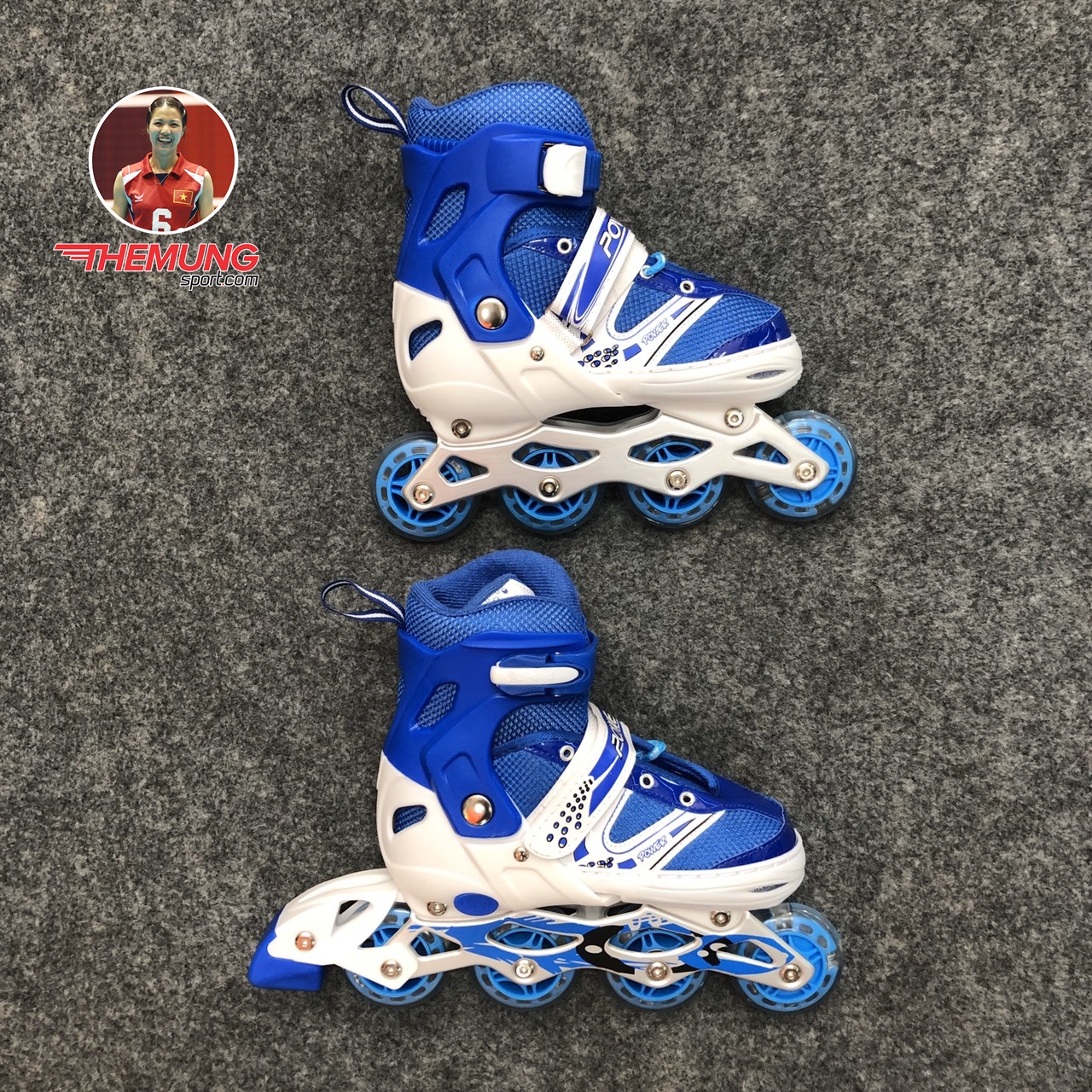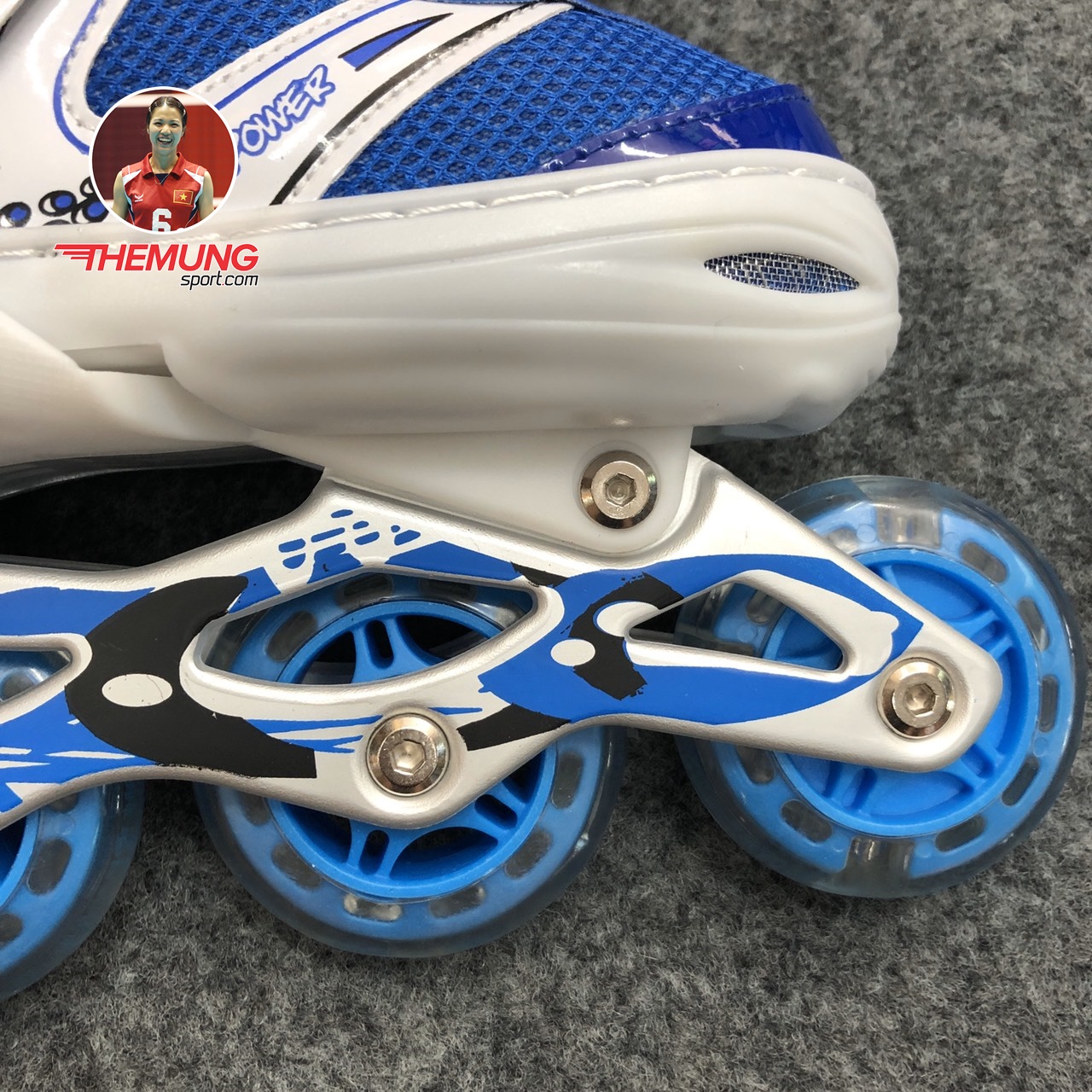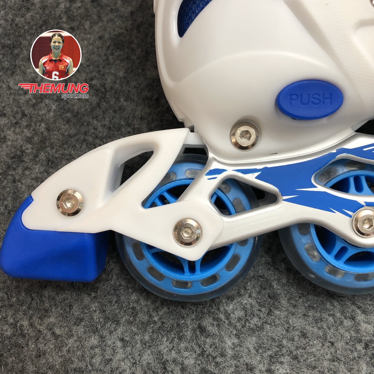 - Bánh xe: Giày patin power mới có một hàng 4 bánh PU có độ ma sát cao và nhạy, tránh trơn trượt, đảm bảo an toàn cho người chơi, cho những bước di chuyển êm mượt, dễ dàng di chuyển, xoay hoặc quay đầu.