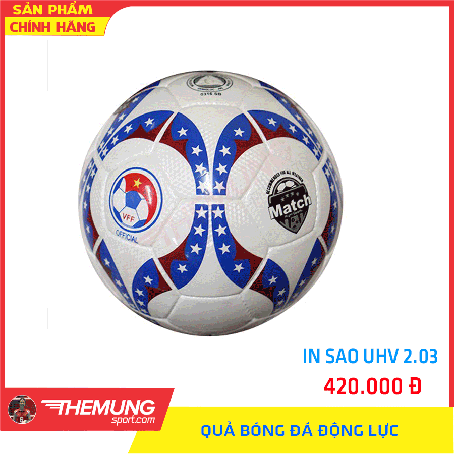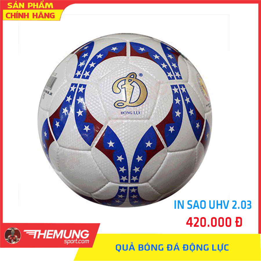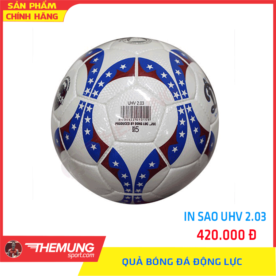 Quả bóng đá UHV 2.03 Động Lực in sao số 5 được làm từ chất liệu da PU Hàn Quốc bền đẹp. Quả bóng Động Lực dùng trong tập luyện và thi đấu trên mọi mặt sân.