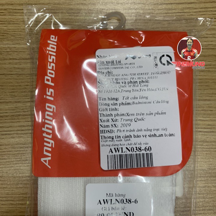 Barcode cho sản phẩm Tất Thể Thao LiNing AWLN038-6