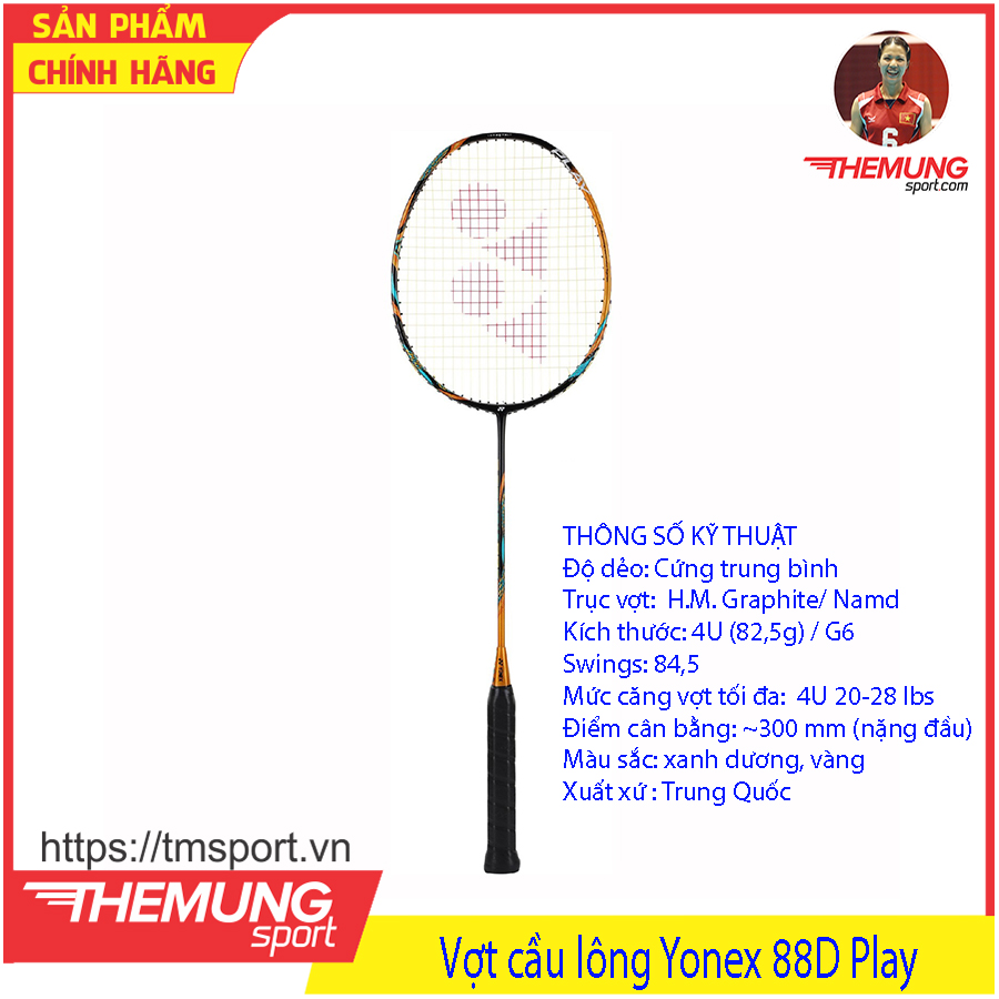 - Vợt cầu lông Yonex Astrox 88D Play với thông số trên sẽ phù hợp cho những bạn Mới Tập Chơi yêu thích lối đánh thiên về Tấn Công nổi trội với những pha Đập Cầu Mạnh Mẽ.