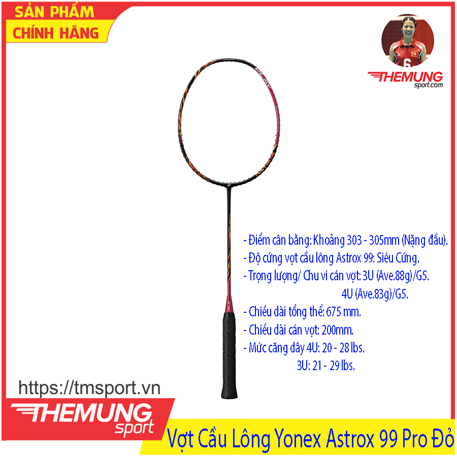 Vợt cầu lông Yonex Astrox 99 Pro đỏ chính hãng - Mạnh Mẽ, Quyết Liệt, Tự Tin Dứt Điểm Đối Thủ