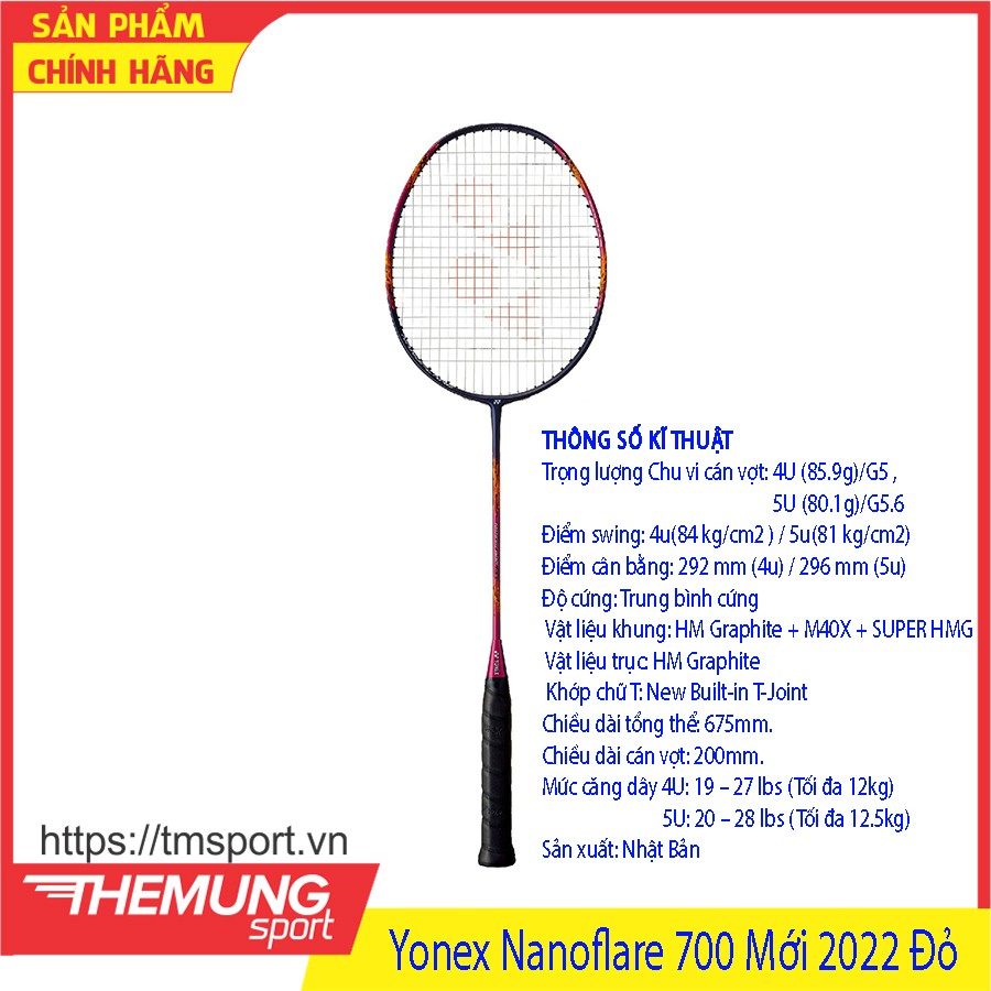 - Tổng kết lại trong dịp đầu năm mới 2022, nếu lông thủ nào đang muốn trải nghiệm và tìm mua cho mình một sản phẩm vợt cao cấp thiên về lối chơi Tấn Công Nhanh, Đập Cầu Liên Tục và đặc biệt là phải vừa được ra mắt thì đảm bảo siêu phẩm vợt cầu lông Yonex Nanoflare 700 New Đỏ 2022 chính hãng chắc chắn là sự lựa chọn tốt nhất.